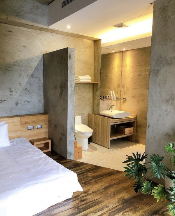 位於日月潭的山慕藝旅空間是一家超高質感旅店.從門口到大廳以木棧道打造,連結到了旅店內!清水模的簡單質感與大自然的木材做結合,最特別的是擁有天井,自然的採光設計!