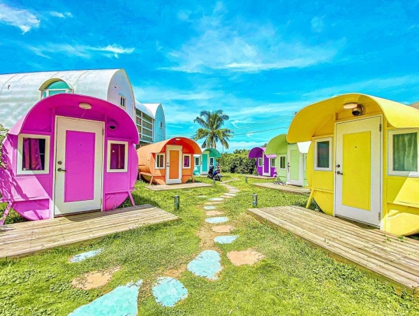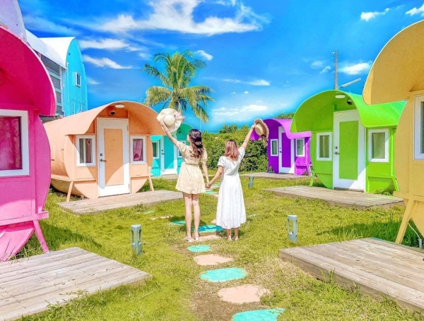 位於屏東縣琉球鄉一間超特色旅宿,戶外造景、繽紛馬卡龍色的水管屋夢幻又好拍,就連房內還有個浪漫到不行的驚喜機關呢!