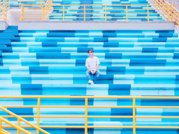 看到藍色你會想到什麼?是海洋、天空?還是自由?大片的藍色系階梯,和天空連成一線,心情瞬間遼闊了起來~其實人生不過如此,每天都要開開心心的~