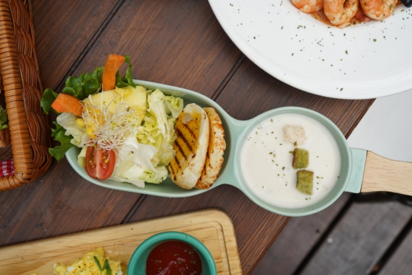 套餐內含優格沙拉、牛奶濃湯、手作麵包,
