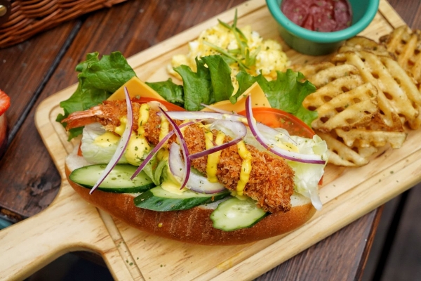 單點的日式炸蝦潛艇堡非常飽滿,