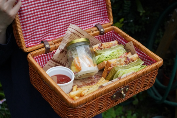 真的就是野餐籃裝著,