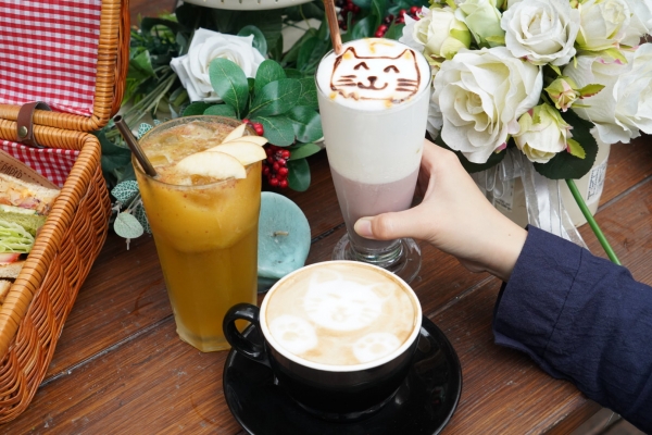 自助區佈置得非常吸引人,貼了滿滿的貓咪照片,忍不住瞧上幾眼!