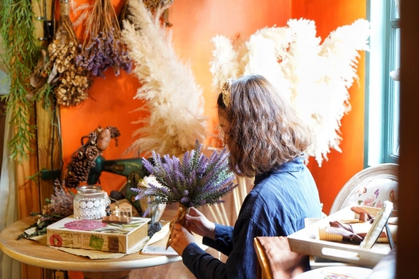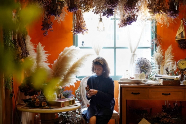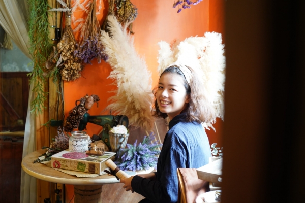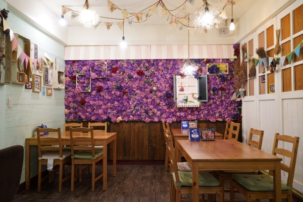 室內桌則是以網美打卡牆的乾燥花裝飾,簡單又舒適。