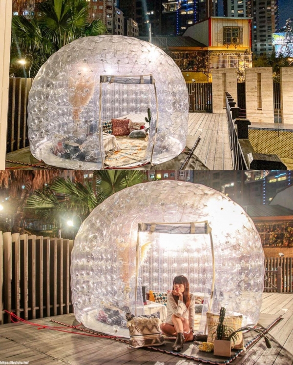 台中新開幕酒吧推薦!隱身於辦公大樓B1的超狂酒吧,不僅供應了多款異國啤酒、主餐及炸物點心等等,戶外還有一座必打卡的夢幻透明泡泡屋,在浪漫燈光照映下,與三五好友聊天小酌實在太Chill啦!