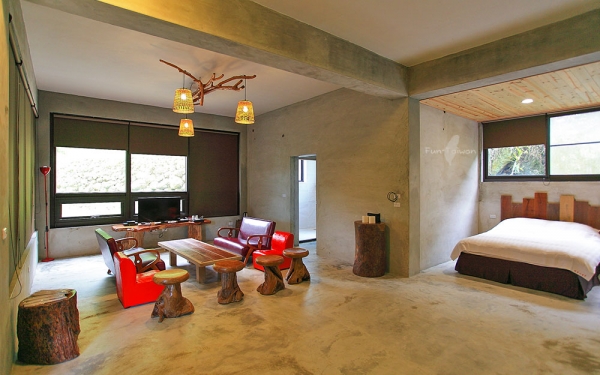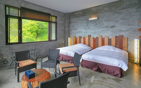 民宿內提供三種套房,分別為雙人套房、四人套房以及六~八人套房,簡約工業風的設計,沒有過多的裝飾,反而更能將重點放在戶外美景上,每間房都有大片的景窗,還有戶外架高平台,可以俯瞰大湖的百萬山景!