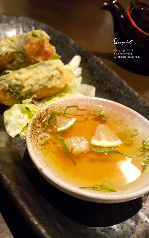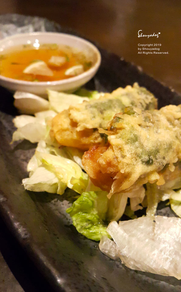 清爽的脆皮,輕輕的沾上這個晶瑩透亮的天婦羅沾醬入口~