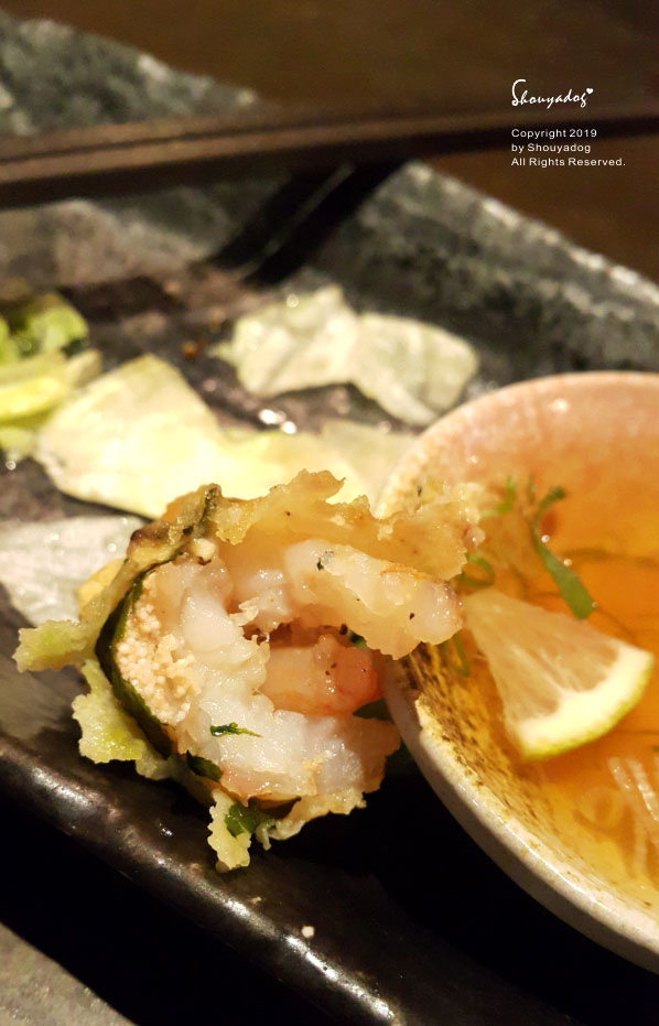 滿滿的蝦仁裹上蝦漿和紫蘇葉後炸得輕薄酥脆~