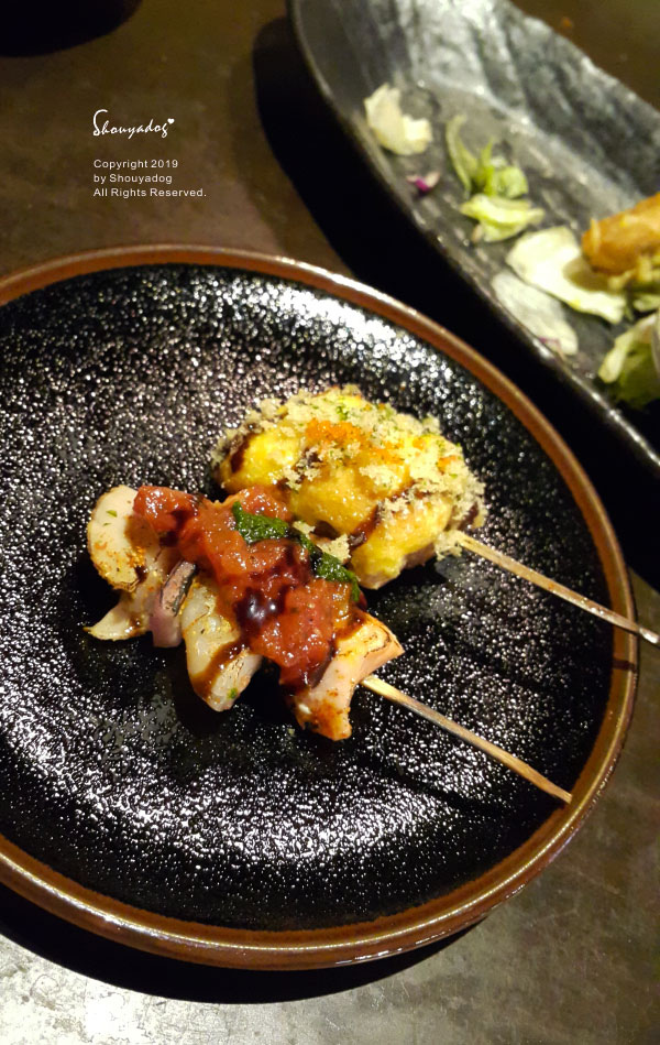 在這一串輕巧的海鮮串燒裡,