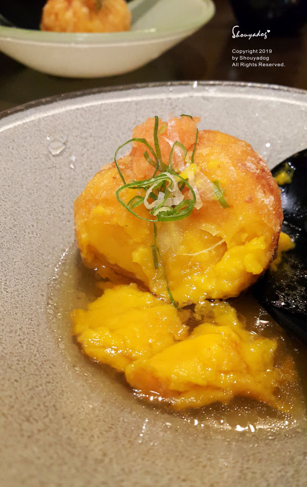 他是用新鮮的南瓜和牛奶下去慢磨成豆腐的口感後,