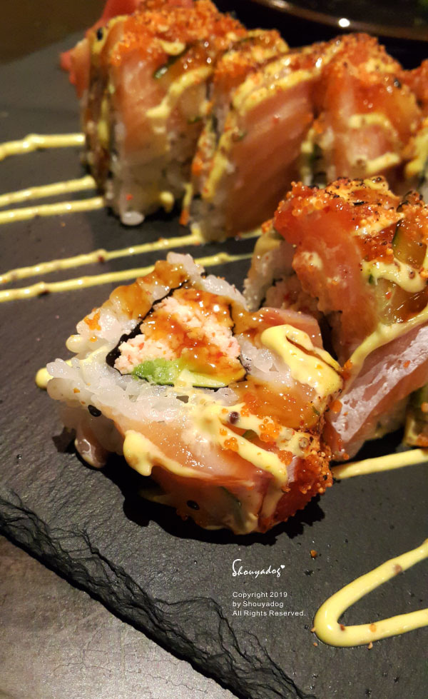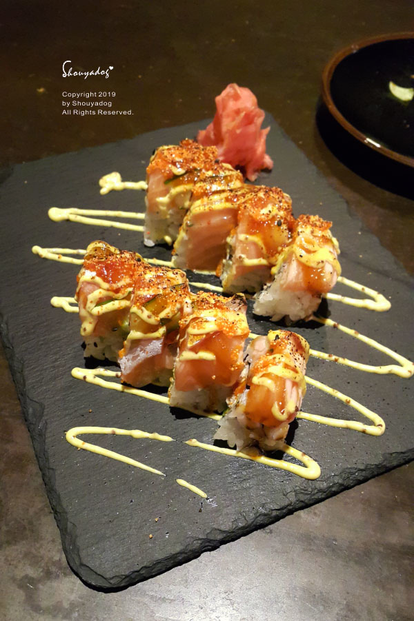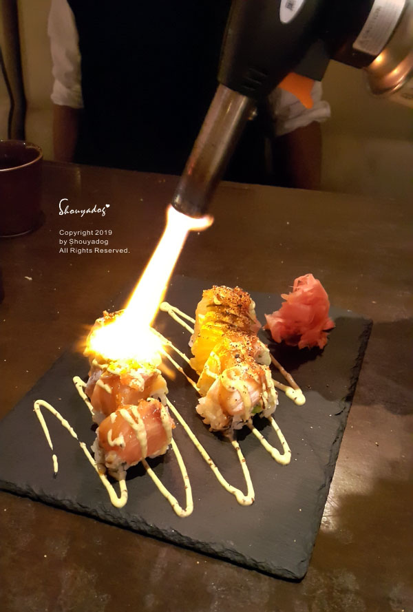 接著是鮭魚火焰卷