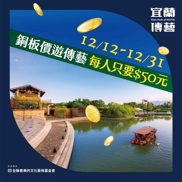 超狂優惠下殺「銅板價50元」,就可以暢玩宜蘭傳統藝術中心!小編更羨慕姓「黃」的先生與小姐,現在就趕快來號召親朋好友有姓黃的在12/19-12/20這兩天出發了!還有更多的優惠介紹就讓我們繼續看下去!