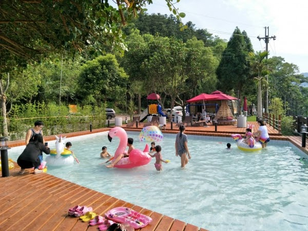 夜晚還能在戶外大玩烤肉趴,也有兒童戲水池可以玩耍,且水深只有40公分不用太擔心,真的是親子休閒好去處啦!