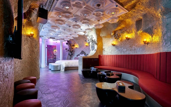館內還有許多不同風格的客房,主題性強,色彩繽紛又有設計感,設施也應有盡有,超多樣選擇任你選!其中最特別的就是「土耳其地獄房」,房內用了大量骷顱頭以及大量的血紅色,充滿神秘感的微驚悚風格!