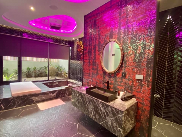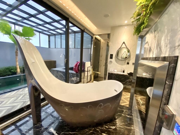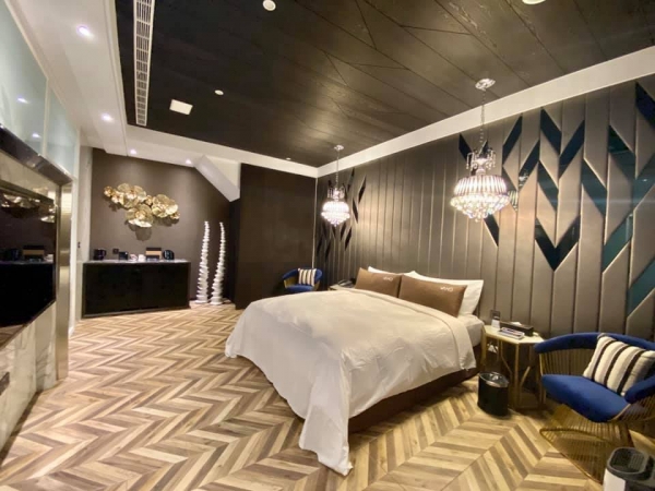 總共28間精品房,坪數自19-78坪,分為三個等級,每一間都有不同風格,浴缸是基本配備,共7間設有KTV,一間設有有專屬泳池。全館採用大金獨立冷暖空調,疫情爆發的時代出遊能避免交叉感染,也能避免鄰房不好的氣味擴散。