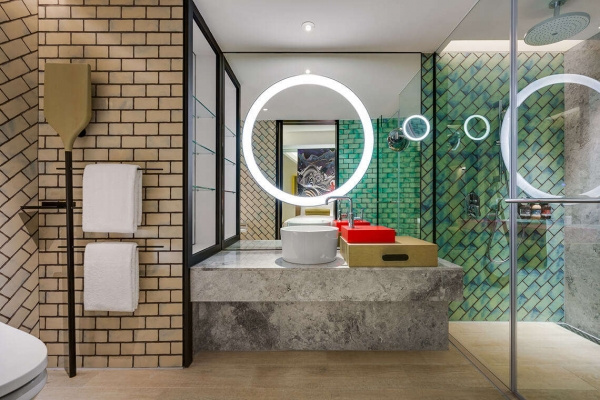 位於台北市中山區一間2020新開幕的飯店,為洲際酒店集團旗下英迪格品牌在台北的首家酒店,一踏進飯店宛如船隻在蜿蜒基隆河岸的遊河之旅,映照湛藍晴空,圈圈波紋閃耀著夕陽金光,與人影相映。從大廳、餐廳酒廊、戶外露台再到飯店客房,一場行舟之旅就此展開,川流匯集於靠岸的渡船頭,等待旅人探索每個精彩旅程!