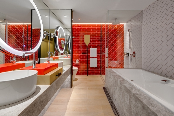 衛浴空間採乾溼分離設計,一旁還附有浴缸可以讓人泡澡,盡情享受度假時光!