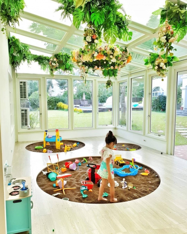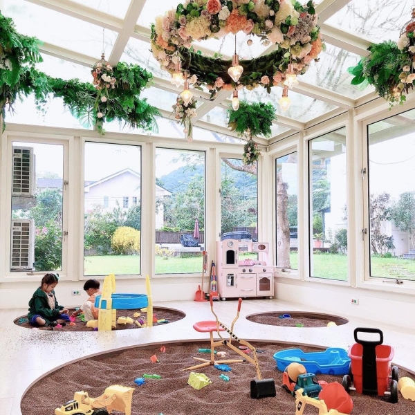 最吸睛的就是這玻璃屋決明子沙坑區!不怕曬、不怕雨,在室內盡情的玩,還可一覽戶外美景,最重要的是他的沙是決明子沙,不但會定期更換,而且輕鬆一抖就離身,不會黏,清洗也非常方便!