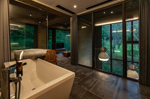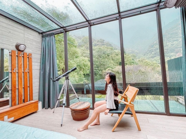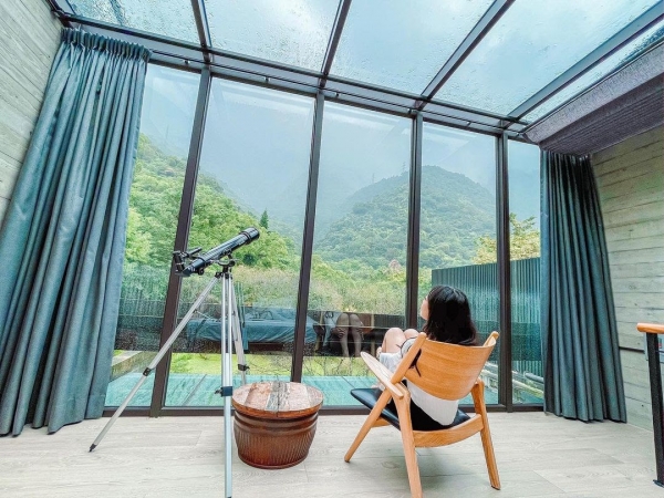 整棟民宿以多面大片的玻璃落地窗搭配屋內質感傢俱裝飾,非常具有透視感與設計感,還有最棒的樓中樓的設計,在小閣樓裡有極佳的觀星位置,讓你的身心靈置身於森林與夜空中!