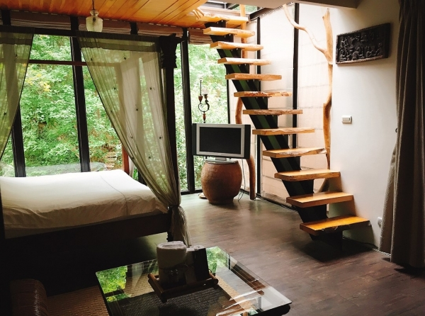 充滿著峇里島風情,三面玻璃落地景致,就像住在森林哩,如果還不能滿足對自然的貪婪,那麼玻璃屋浴室與客廳的通透感,絕對讓你滿意!!!