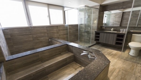 簡約設計的衛浴空間,一旁還附有獨立浴缸,讓你一邊泡澡一邊欣賞窗外景致,盡情享受度假時光!