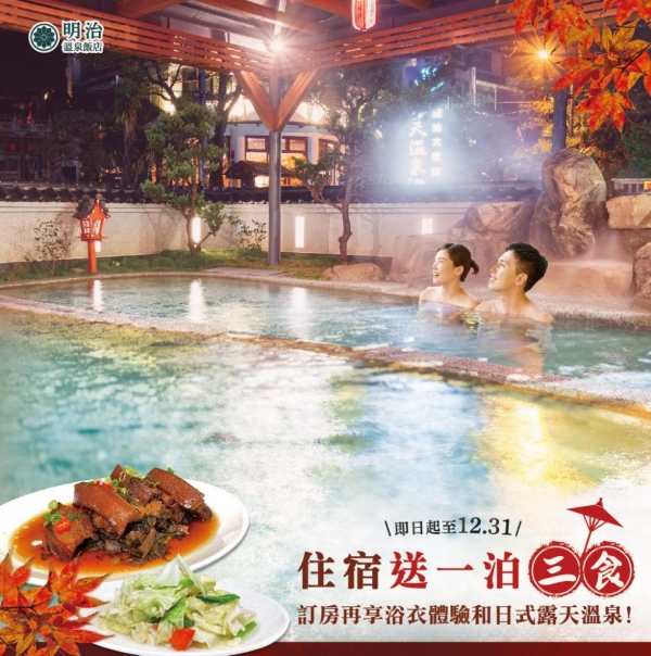 即日起至12/31,全館不限房型,只要預訂入住就送一泊三食,訂房加贈浴衣體驗及日式露天温泉,讓你徹底感受偽出國度假的氛圍!這麼划算還不快手刀訂房?!