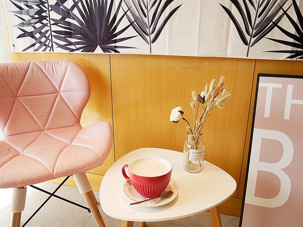 不僅有超粉紅的椅子 還有乾燥花、白地毯、大字海報等等