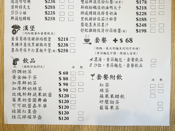 如果點燉飯或義大利麵可以加$68升級套餐