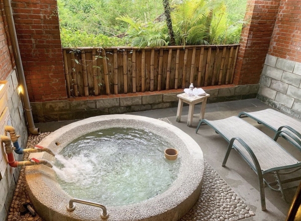 每間客房都有屬於自己的私人泡湯池,半露天的溫泉池還能欣賞到山巒美景,獨立的泡湯完全不需要擔心被打擾!在池中設有可以坐的小石椅,能夠很舒服的享受美人湯!水溫可以隨著自己的喜好做調整!躺在躺椅上也能很愜意的發呆放鬆!