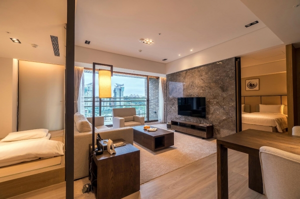 共有78間客房,23至45坪寬敞舒適空間,每間皆有起居室、餐廳、臥室及乾濕分離的浴室,三合一預熱冷暖機可以定時及暖房,浴室內最特別的是養生SPA浴座,坐著即可享受淋浴及水療體驗。