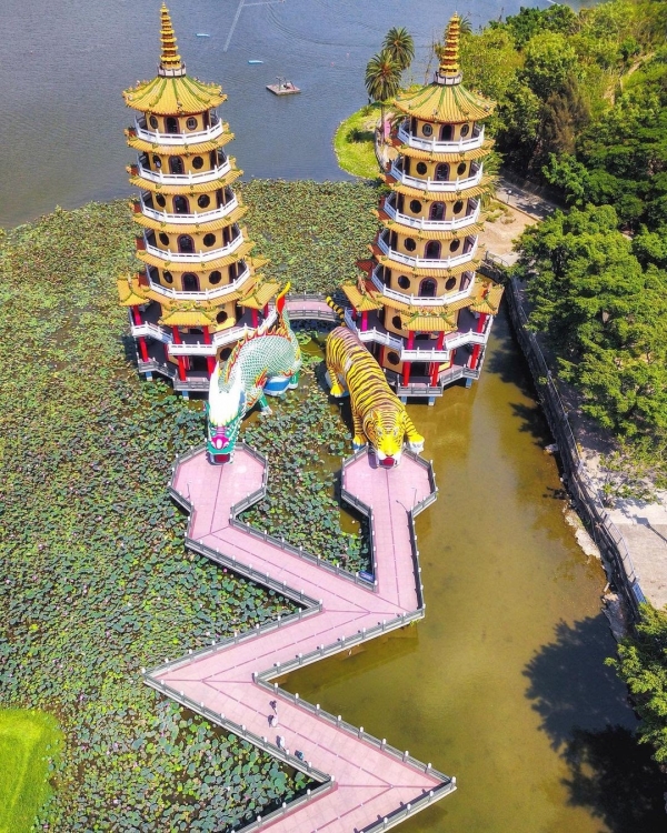 蓮池潭是高雄市最具傳統色彩的風景區之一,其指標性建築「龍虎塔」有夠吸睛,可以讓人感受到東方神秘色彩的震撼,絕對是來高雄旅遊必拍景點啦!