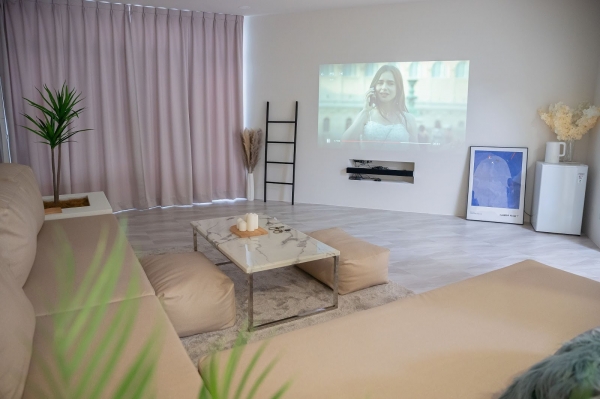 提供Netflix片源收看,搭配120吋超大投影機加上豪華音響,根本就是電影院包場了!吧台區還有提供冰箱,旅人可以免費使用礦泉水、可樂、膠囊咖啡機與餅乾!