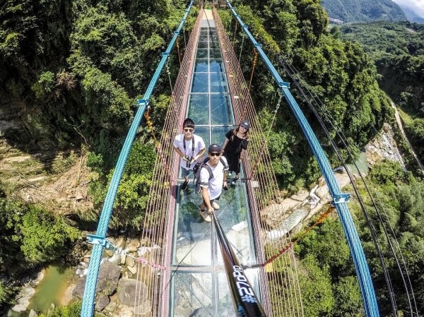 信義鄉公所斥資600萬打造的「坪瀨琉璃光之橋」為透明玻璃橋面,其高度約有十層樓高,由上往下看超級可怕!但走上去橋上可以眺望整個山谷之美就覺得一切沒什麼啦!