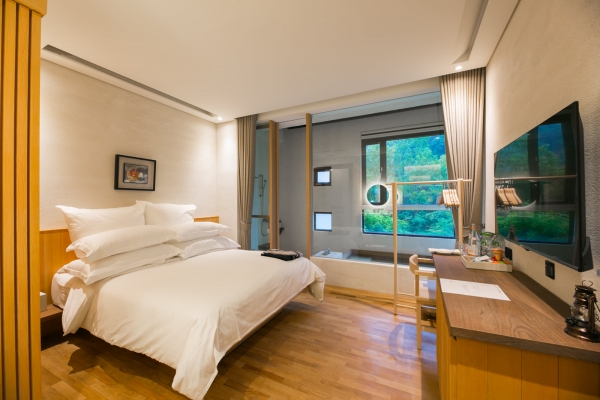 館內提供了多種湯屋房型及露天湯池,客房部分分為前後棟,前棟為一般住宿空間,提供了40間客房,每間房皆擁有獨立溫泉浴池,部分客房更採內外雙湯池設計,讓旅客不用踏出房門就能享受療癒的美人湯!後棟則是採會員制的CLUB SUI俱樂部,提供了13間客房,空間更寬敞且隱密性更高,適合享有個人或與親友私密時光的旅客!