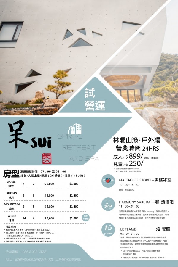 目前都還在試營運中,想來礁溪旅遊兼泡湯的朋友千萬別錯過啦!