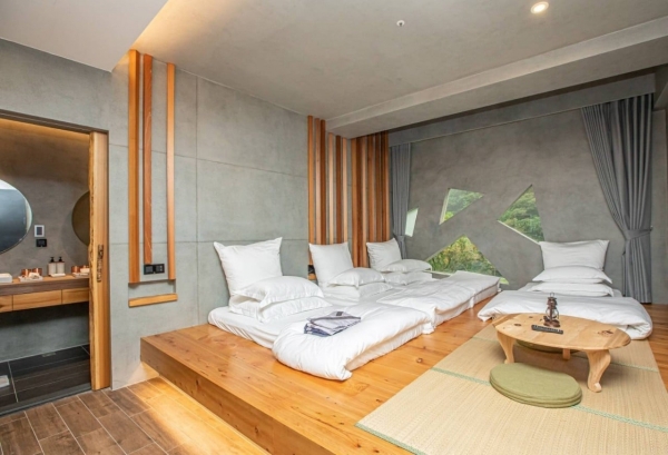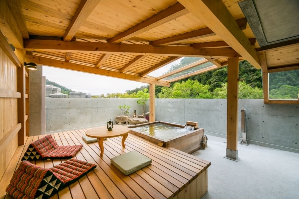 坐落於宜蘭知名景點抹茶山腳下一間全新溫泉渡假村,緊鄰礁溪五峰旗步道登山口,以日式風格清水模為設計,絕美的外觀加上四周環山擁抱,清幽的環境讓人感到放鬆愜意,並結合了泡湯、SPA及餐飲等等,是個假日遠離喧囂好去處!