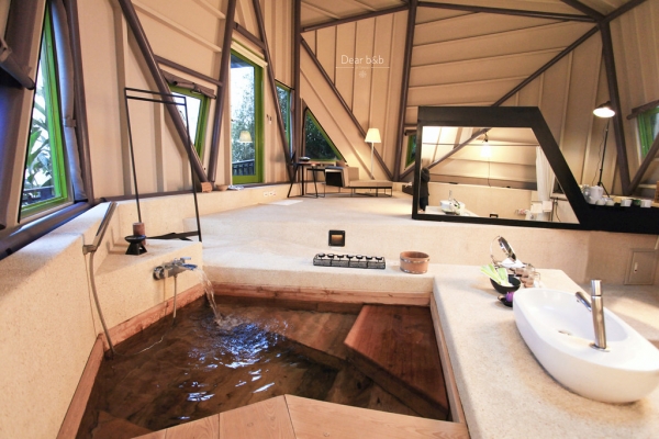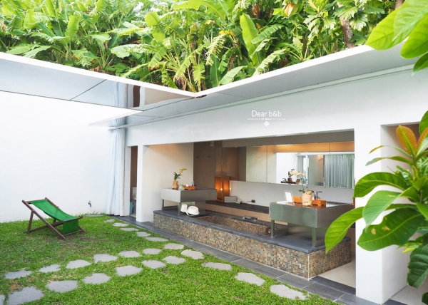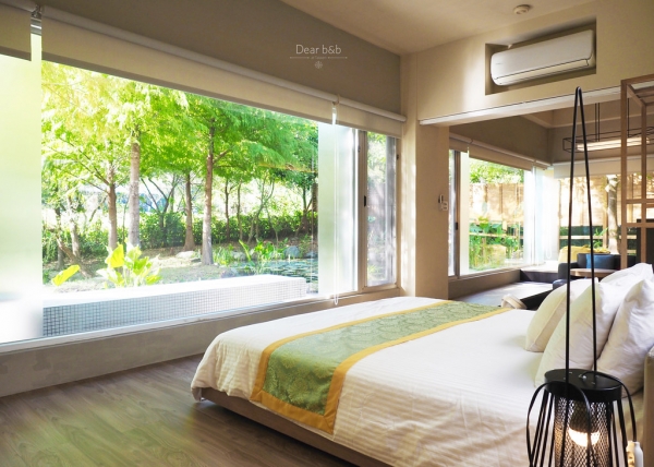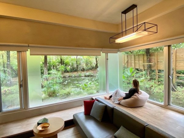 環繞生態池的獨棟庭園式別墅,房間兩側整排為大面落地窗戶設計,從戶外遙望猶如坐落水間的玻璃屋,獨立獨棟以及半戶外浴室設計,給您與自然融合、室內外合一、私密獨享無二的感受。