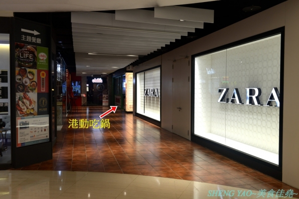 "港動吃鍋"在老虎城購物中心2樓、ZARA旁邊走道內主題餐廳區,