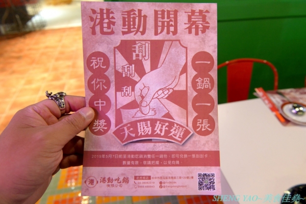 5/7前來店內點任一鍋物就送一張刮刮卡,