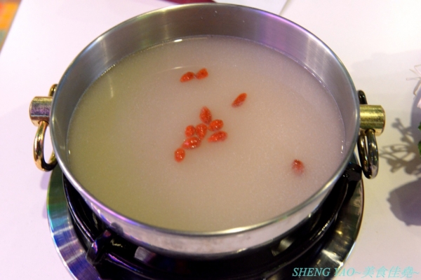 乳白色湯頭帶有淡淡的豚骨香味和枸杞的甜味,