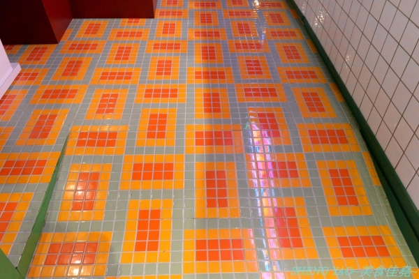 兩邊的白色磁磚牆壁上掛著五顏六色的閃閃霓虹燈招牌,