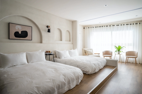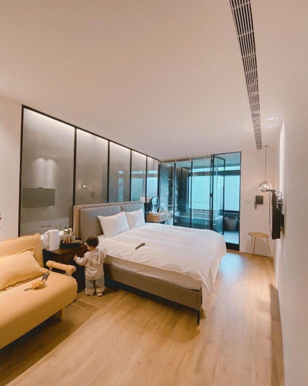 提供雙人房以及四人房,可以選擇過夜住宿或者休息,休息時間為2小,空間高挑寬敞,純白色調為基底,整體氣氛溫馨舒適,房內皆有大片的景觀窗可賞無敵山景,房內衛浴也非常寬敞,泡湯池也夠大,整個家庭泡進去都不是問題!