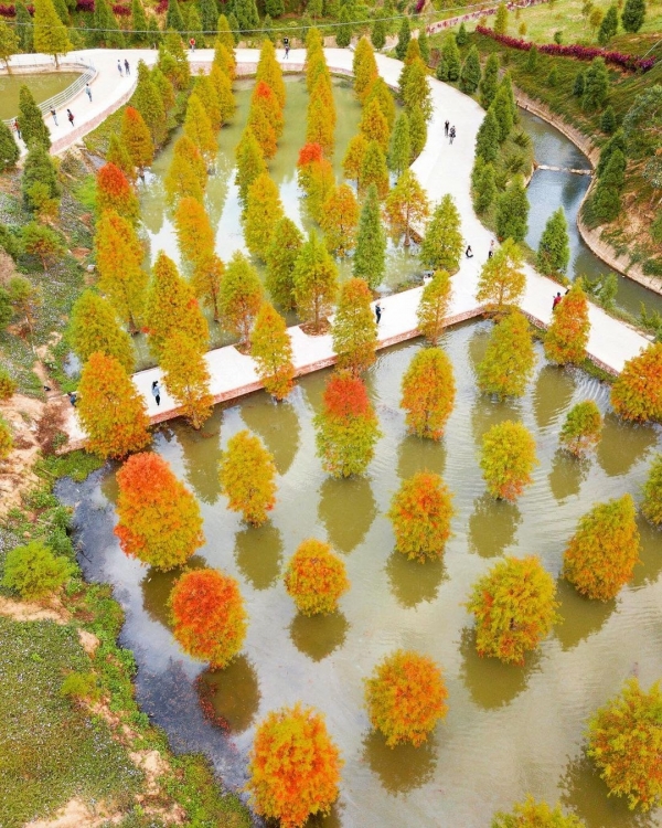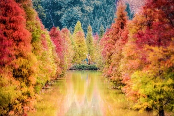 近年爆紅的三灣落羽松秘境,上百棵落羽松種植在此地形成奇景,落羽松的湖光倒影令人著迷,紅黃綠間的交錯疊加有夠夢幻啦!
