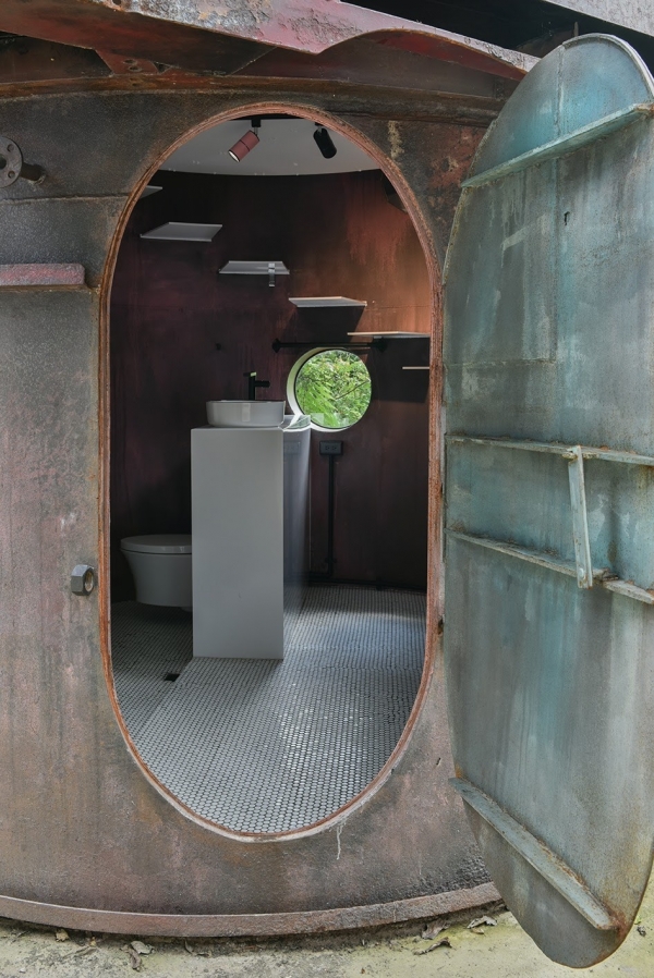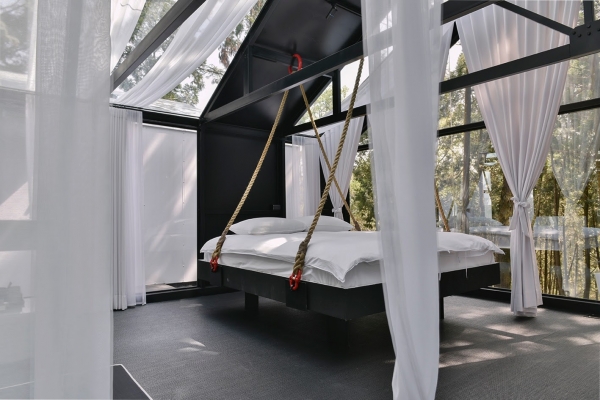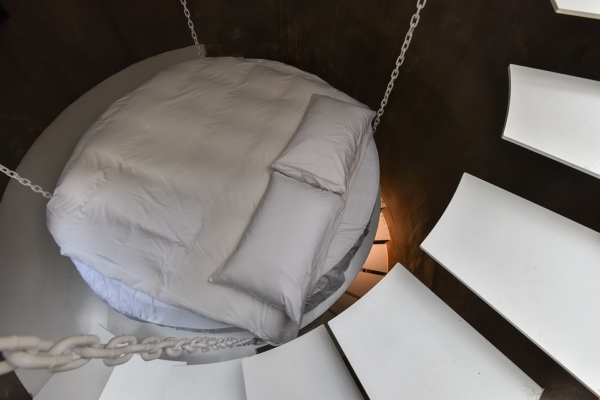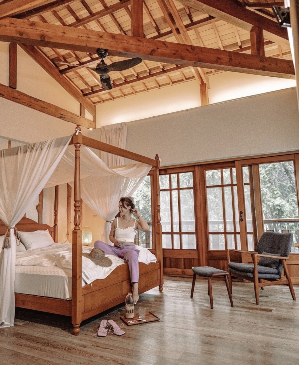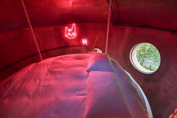 垂掛式的床抬頭還有一片透明玻璃,可以在夜晚浪漫數星星!因為疫情沒辦法出國,國內旅遊口袋名單一定有南投,享受群山環繞空氣超清新的環境!工業風的設計,將廢鐵煥然一新!但因為部分房型的階梯並沒有安全欄杆的設施,因此就不開放10歲以下孩童、年長者、行動不辨及孕婦入住!