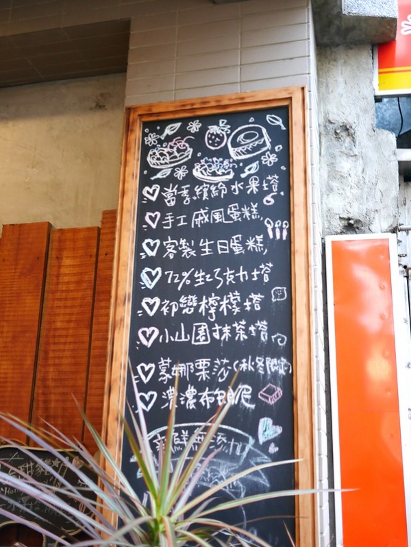 ↓ 門口的地方就有寫上專賣的商品分類,像是水果塔、檸檬塔、戚風蛋糕....等等。