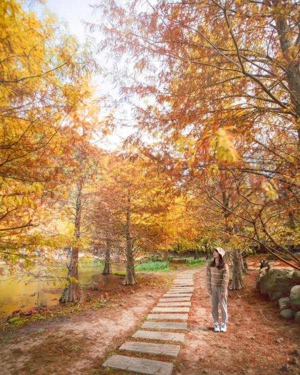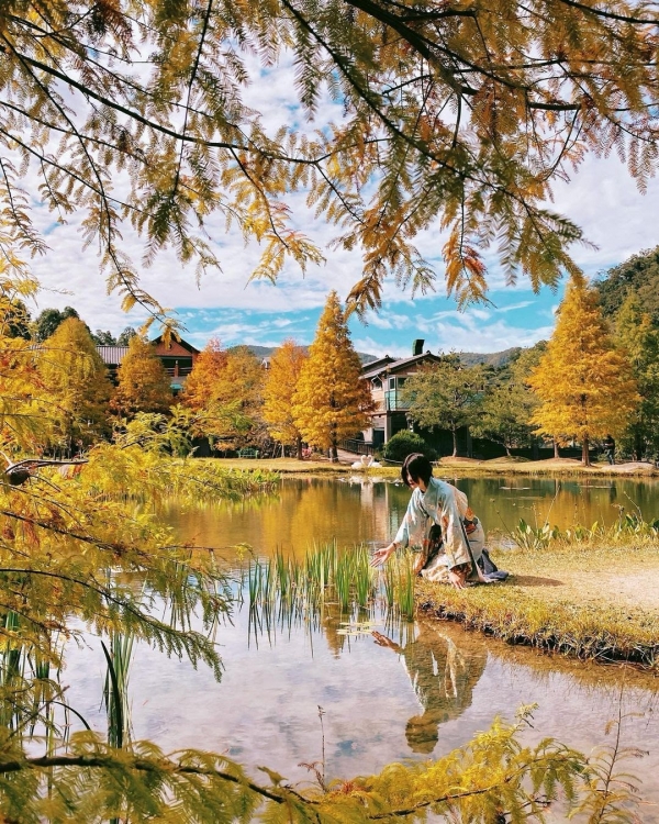 隱身於南庄鄉一座絕美度假森林,也是全台十大落羽松秘境之一,遊走於落羽松湖畔小徑、欣賞周邊無敵景色,宛如闖進仙境般的世外桃源,簡直夢幻到不行!