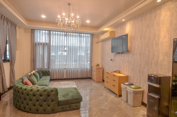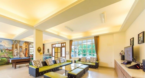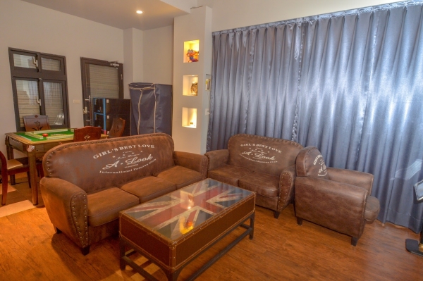 屋內空間寬敞明亮,一樓的交誼廳有大沙發、撞球檯、氣墊曲棍球等等