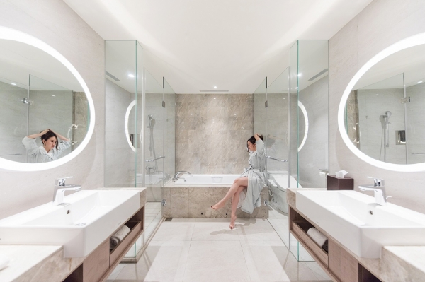 乾溼分離的衛浴空間,一旁還貼心地附獨立浴缸,讓你盡情泡澡享受度假!