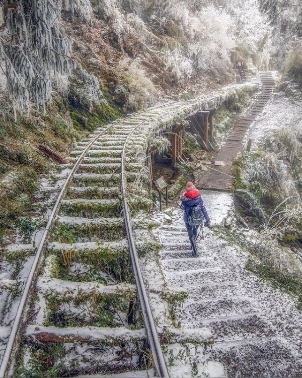 見晴線運材軌道原長約5.5公里,有寬廣的視野、平緩的路徑、蒼翠的地貌,還能賞山稜線以及迂迴曲折的鐵道路徑,然與人文資產皆豐。為台灣唯一入選全球最美的28條小路之一,在這裡時常雲霧繚繞,霧濛濛的景色,加上寒流來襲,充足的水氣讓這裡下雪啦!白茫茫的一片真的超好拍,一秒置身北國秘境!