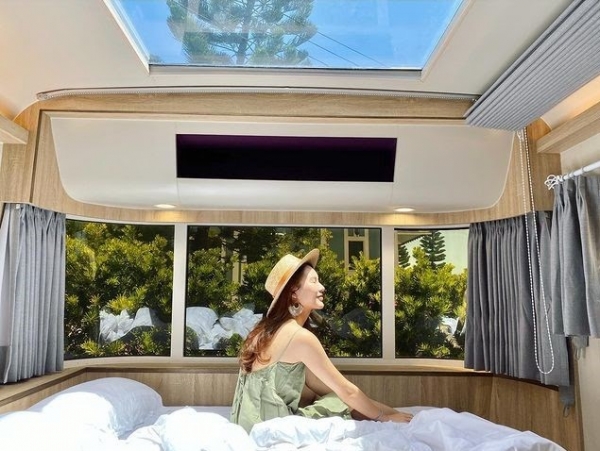 絕美濱海岸出現了數十台六星級貴族露營車,由斯圖亞特海洋莊園民宿、都鐸王朝老闆打造而成,露營車內採飯店級別的配備,彈簧床、冷氣、免治馬桶及乾濕分離衛浴設備,還設有透明天窗,夜晚能夠浪漫數星星,還有銀河、極光、新極光三種車型可選!